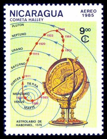 Auf der Briefmarke ist ein Astrolabium des Erasmus Habermel (ca. 1538 - 1606) abgebildet, der als kaiserlicher Hofinstrumentenmacher in Prag arbeitete und Uhren sowie geodätische und astronomische Geräte anfertigte.
