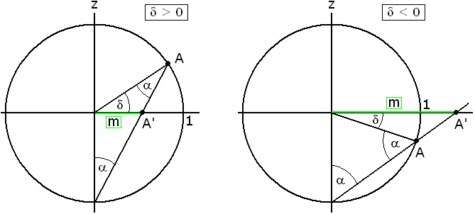 und (vgl. Horizont) Mittelpunkt (cot δ, 0) , Radius 1/sin δ.
