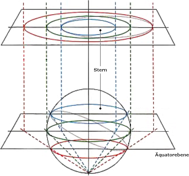 Ausgangspunkt ist das geozentrische Modell der "Himmelskugel" mit der Erde im Mittelpunkt (Bild 1).