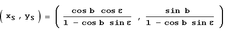 xs = cos τ · ((1 - sin δ)/(1 + sin δ))1/2