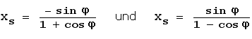 Für τ = 0° bzw. τ = 180° und δ ∈ (-90°, 90°] ist nach (6) xs ∈ R und ys = 0 .